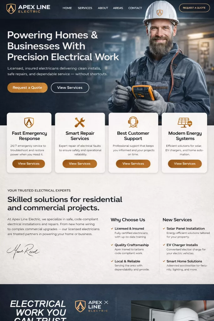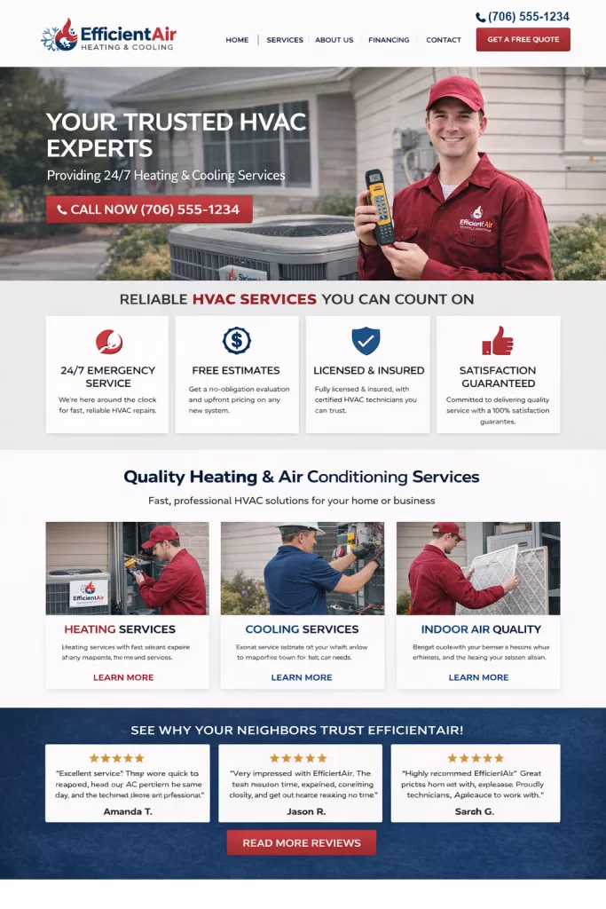 Each page is built with visual call-to-action placement and behavioral flow in mind. Buttons, forms, headlines, and sections are strategically positioned throughout the layout so visitors are guided naturally toward taking action—whether that means calling, submitting a form, or starting a conversation.